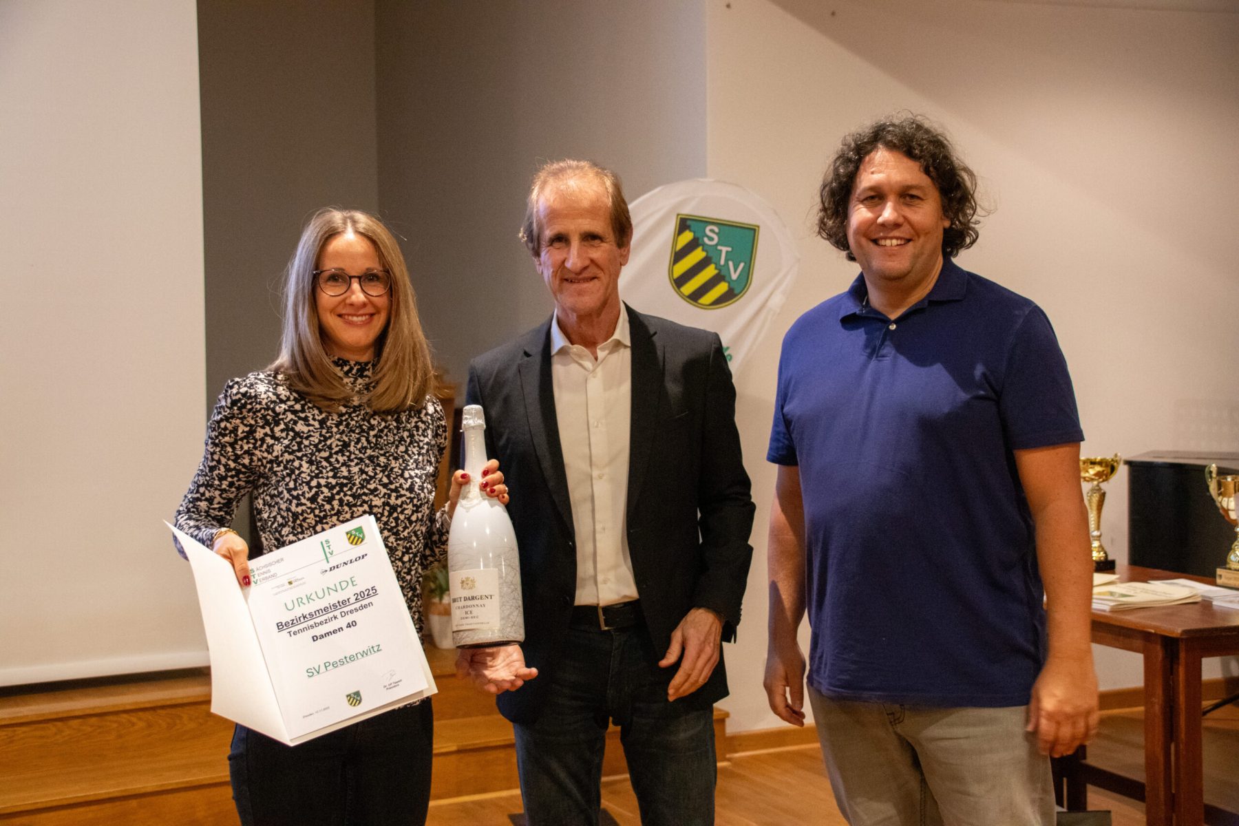 Auch in diesem Sommer kämpften Teams aller Altersklassen und Tennisbezirke auf sächsischen Plätzen leidenschaftlich um Titel und Pokale. Zeit also, Landes- und Bezirksmeister-Teams der Junioren, Aktiven und Senioren sowie die Sieger des STV-Vereinspokals aller Konkurrenzen gebührend zu ehren. So geschehen in der zweiten und dritten Novemberwoche in Leipzig, Dresden und Chemnitz. Wie in den letzten Jahren fanden die Ehrungen in Chemnitz (18.11.) und Dresden (12.11.) im Rahmen der Bezirkskonferenzen statt. Lediglich in Leipzig folgte dem regionalen Austausch der Bezirkskonferenz (11.11.), einen Tag später eine separate Ehrungsveranstaltung in der Sportschule Egidius Braun. An allen drei Orten nahmen die strahlenden Siegerteams Gratulationen und kleine Präsente entgegen.